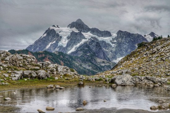 After the walk, and a rest, we thought that we would make another run at Baker Mountain, which was last time completely covered in fog and clouds. Again we were lucky. It was cold, windy and drizzle but there it was in all its glory. Mount Shuksan however had it tip still shrouded in clouds.