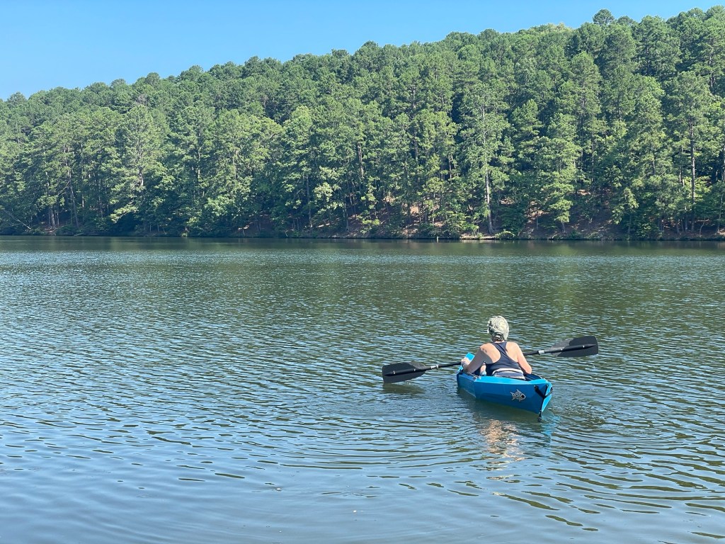 We took the foldable paper kayak out on Lake Catherine and Kim had a wonderful couple of hours. Then it was my turn. I and it did great, for the first hour. Then I noticed a little bit of water coming in. About the time I got close to the shore I just sank! Later we figured out that it is rated for 200 lbs and I am 195. Fortunately I am a good swimmer and we got the boat back to shore. We are going to try to exchange of for the next model up which will support 300 lbs. Hopefully, I can stay away from too many treats until then?