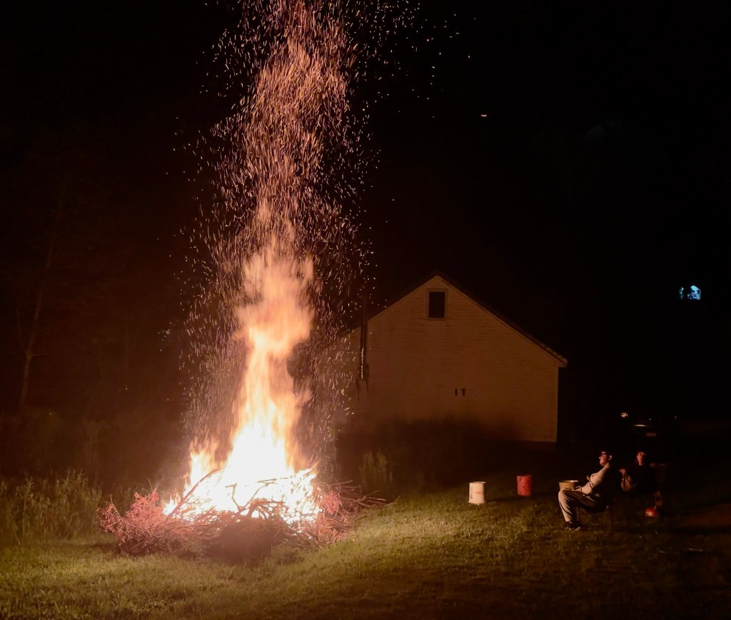 We arrived just in time to have a roaring fire. It was a fairly cool night, so a fire was welcomed by everyone, except perhaps by the neighbors? Oh wait, there are none!