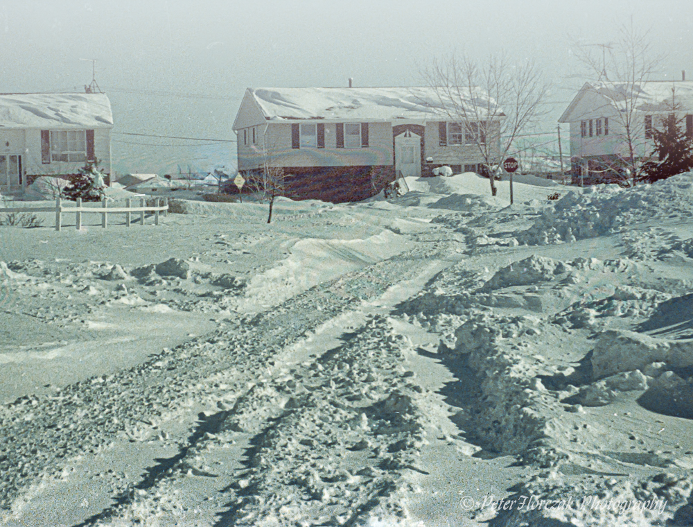 When we reached the largest pile he said that this was it a 1971 Ford F100 pickup. I lamely asked, mostly because I couldn’t think of anything else to say, what color it was. “Here,” he said, “I’ll show you,” He started to dig straight through the packed snow. When he hit something solid he said, “Here! Look through here”