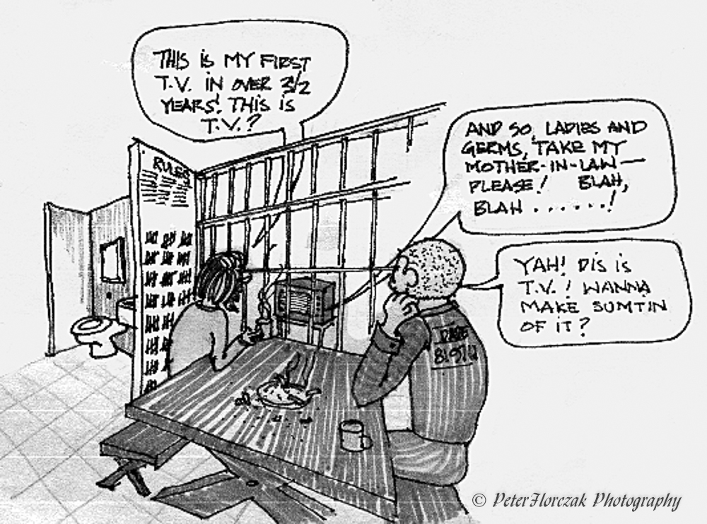 “Boy, I can’t wait till lights out,” he said using an accentuated pleasant, almost sweet tone. “That’s when all kind of things can happen to new meat. “Hey, Joe it’s almost lights out time already isn’t it?” I was no fool. I instantly knew he was talking about me. The conversation went back and forth across the room. I stared straight ahead at he screen, even though it was still blocked by Convict No. 1. After a while he took notice of this fact and leaned down and said in that same pretend kind of gentle voice, “Oh, excuse me am I blocking the TV?”