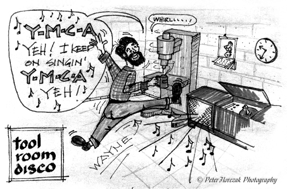 My job opportunities at that point were limited. It was the middle of winter, I had no car, and no job prospects. Who would hire an ol’ hippie architect who had been out of the job market for over 6 years? At this point Wayne offered to try to get me a job with him down at the machine shop. I would be able to drive with him until I got my own car. It sounded like just what I needed, only I thought to myself, what do I know about machines? I needn’t have worried though, because Blackhawk Molding turned out to be run so inefficiently that everyone said it must just be a write off for the wealthy owner. He really didn’t seem care how many plastic milk carton handles we turned out.