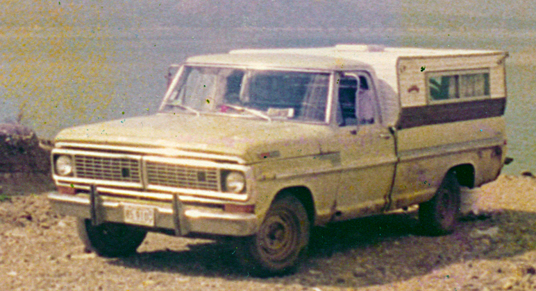 In the week that followed I called around to junk yards trying to find a camper shell. I was lucky enough to find one. It was under a pile of old car parts. It had split at the four corners, I guessed from the weight, and was flattened out like it was an life-size cardboard cutout of a camper top. I asked the guy what he wanted for it, and he said $25. Wow, I thought now we’re on a role. Once my Dad and I pulled it free we found that remarkably 3 out of the 4 windows were not even broken!