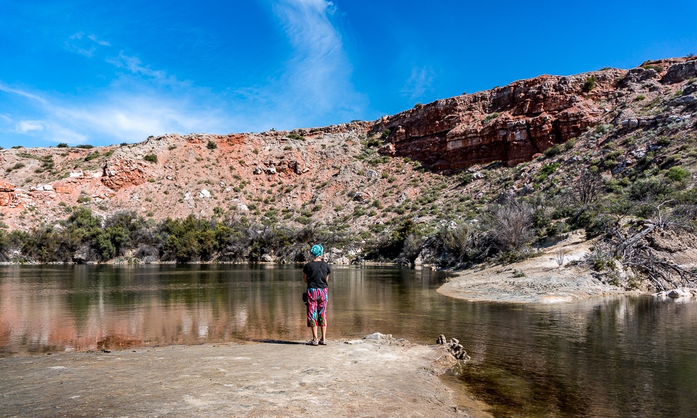 We had a fabulous two days at Bottomless Lakes State Park in Mew Mexico. There were a couple of nice walks, and a really fine long bike ride. We visited all of the bottomless lakes, both big and small. They really were a type of cenote, similar to what I had seen in Yucatan, Mexico. It looks like the limestone had just given way, caved in and made some large sinkholes filled with water right in the middle of the desert.