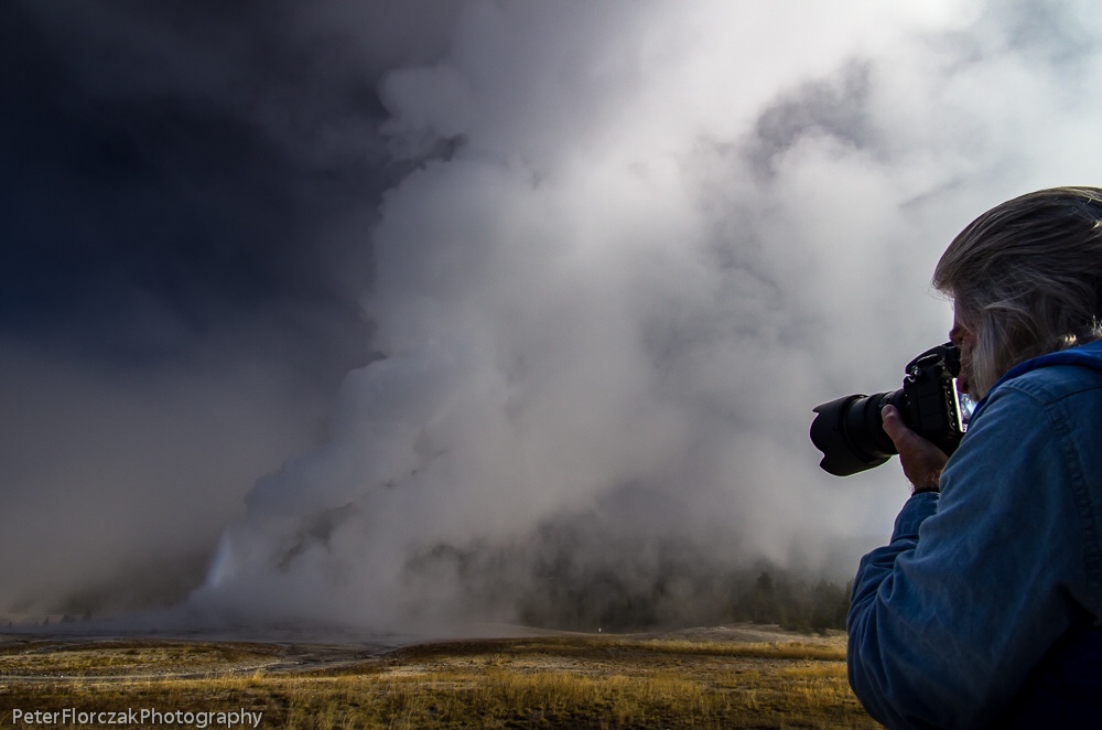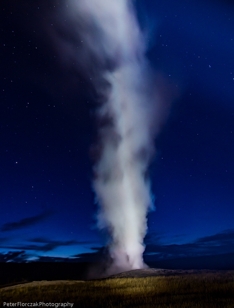 Yesterday, we thought that we would try to do something a little bit different. I said to the group, “Why don’t we try and paint Old Faithful with light? ” Nice idea, came the reply.