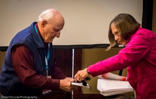 As the main event wouldn’t happen for another 90 minutes we headed into the cafeteria for dinner. Then, while it was still semi-light we setup again, and waited for it to get dark. I was little worried that my million watt light would not be strong enough to illuminate the geyser, but Kim, who was to be the light painter did an excellent job of slowly moving the beam up and down the stream of water, while Jack and I counted off the 30 second exposures.